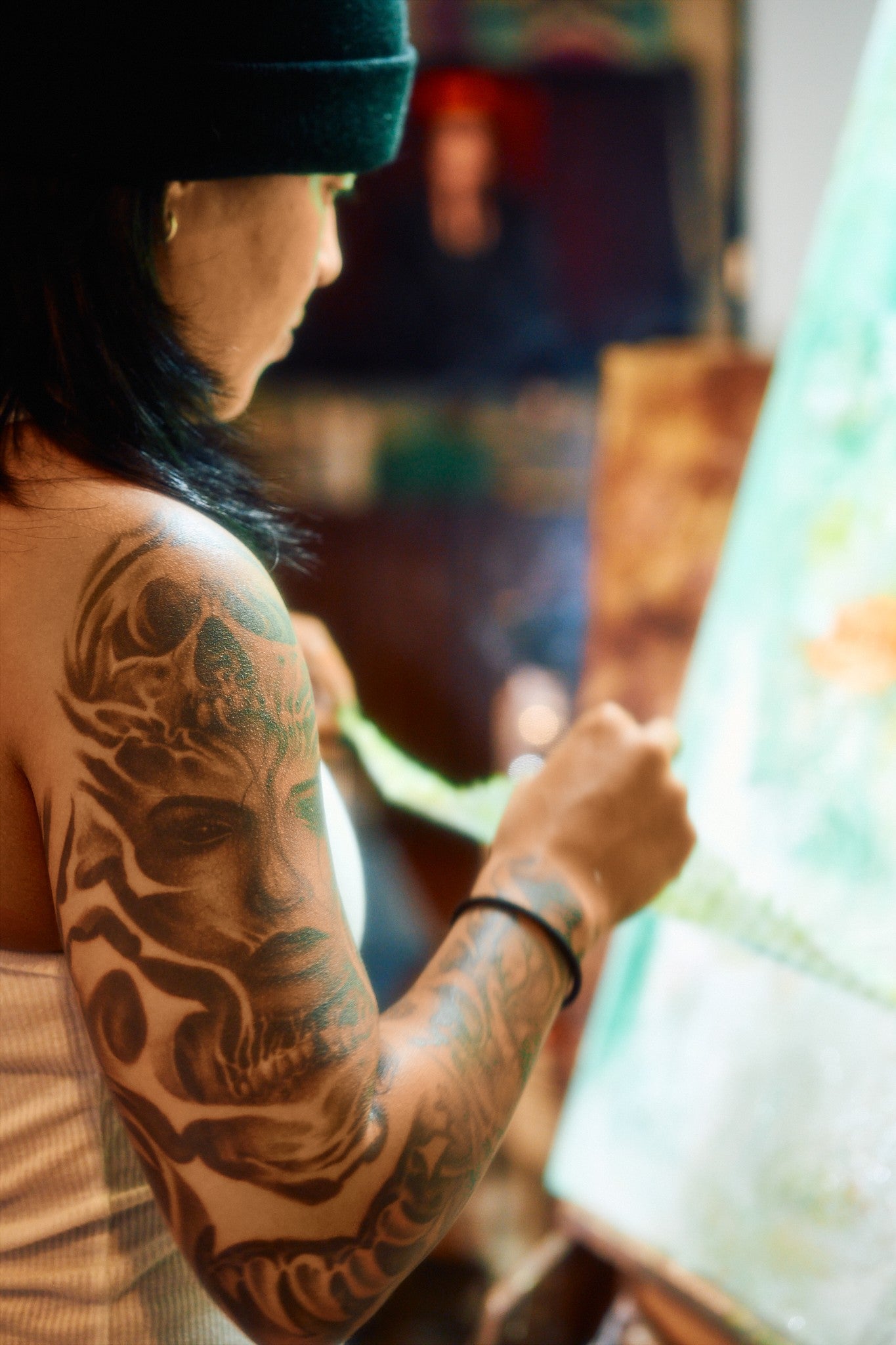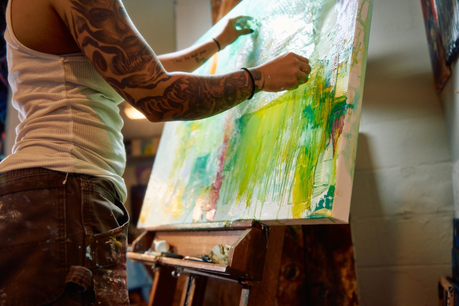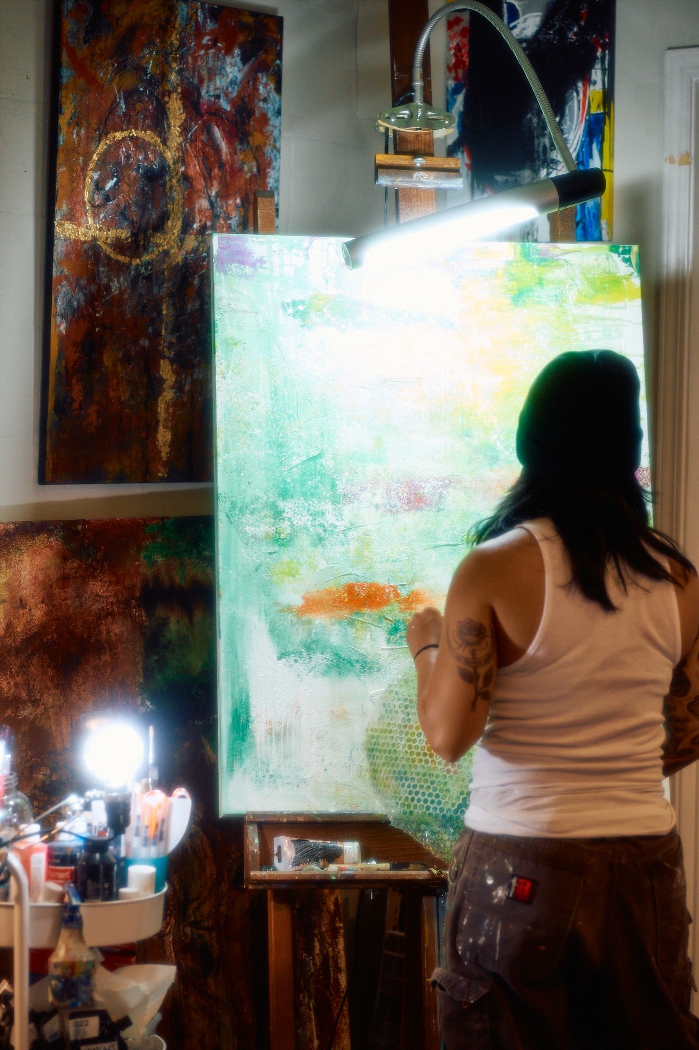 I’m a self-taught abstract expressionist with a love for mixed media. Painting became more than just art for me—it became survival. It saved me in some of my darkest moments, and it continues to be my outlet for navigating the day-to-day chaos of life and the ongoing journey of staying sober.